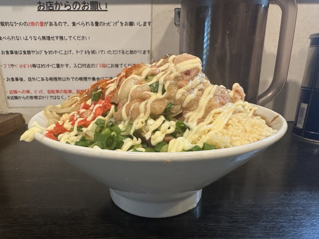 ただし、塩分濃度はやや高めに感じました。デフォルトでも、ニンニクの効きがしっかりと主張しており、食欲を掻き立てるパワフルな一杯でした。コラボならではの特別なトッピングと、お店の個性が光る「鬼辛」の組み合わせ大満足です!