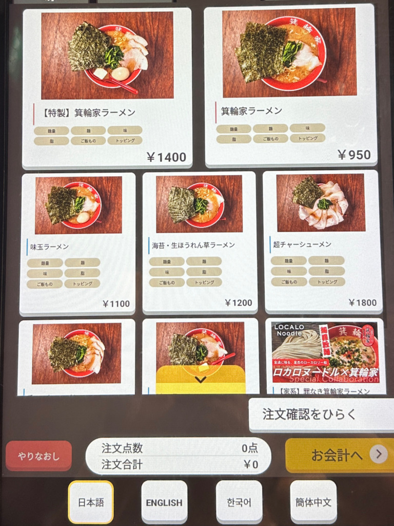 【お好みコール】券売機で麺の硬さ、味の濃さ、油の量が調整可能。