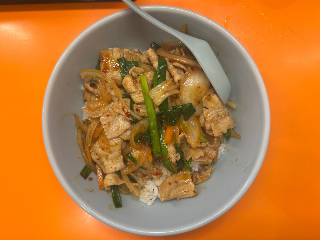 豚肉他を甘辛く煮詰めた焼肉丼。豚肉丼、スタミナ丼のネーミングの方がイメージしやすいかなぁと。