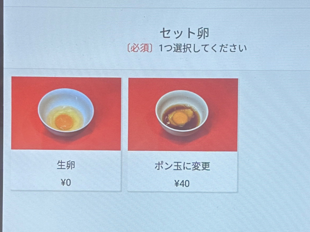 • セット卵:味変のキーアイテム、ポン玉(ポン酢で和えた溶き卵)に変更をポチッ!🥚