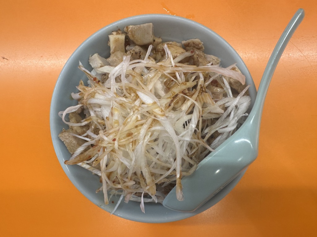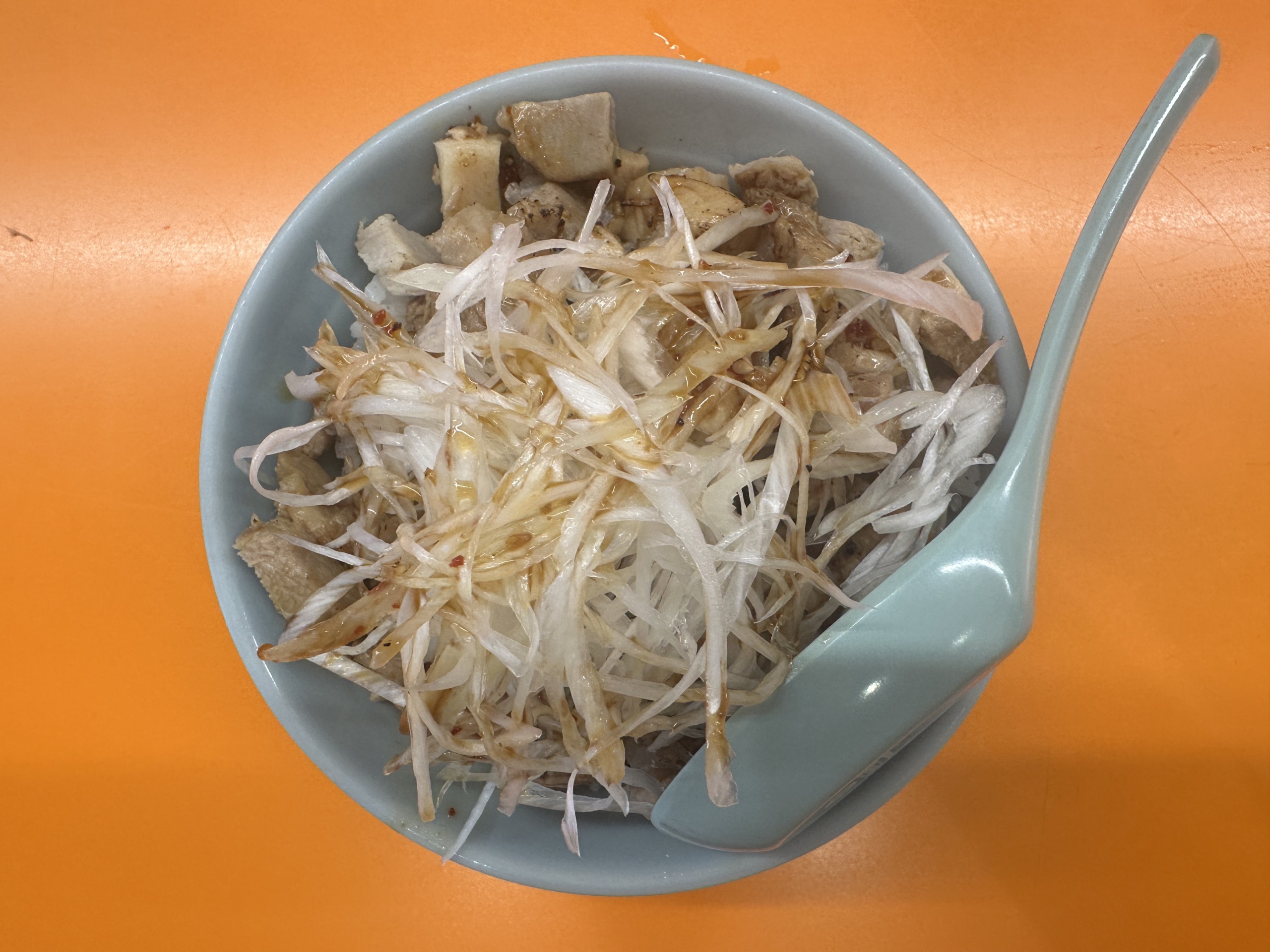 タレの染みた熱々のご飯、香ばしい炙りチャーシュー、そしてシャキシャキとした大量のネギが一体となり、口の中で至福のアンサンブルを奏でます。ラーメンの余韻を楽しみつつも、このミニ」サイズだからこそ罪悪感なく、そして最後まで飽きることなく完食できるのです。