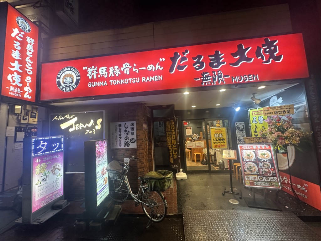 武蔵新城駅が最寄りの「群馬豚骨らーめん だるま大使 無限 武蔵新城店」へ。