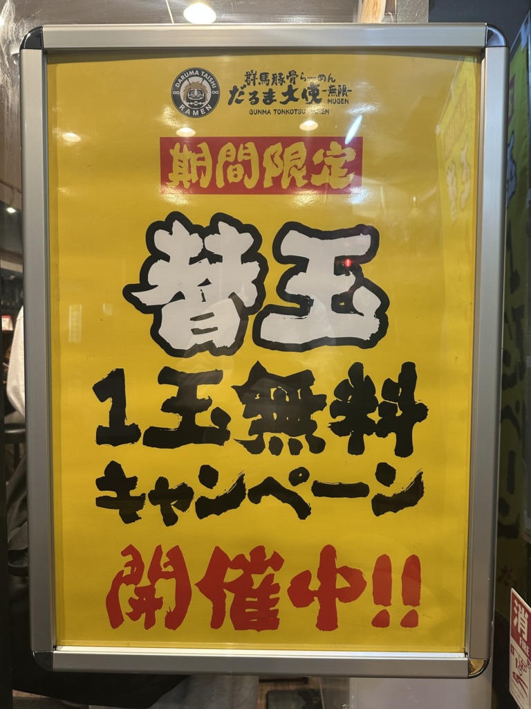 群馬豚骨らーめん だるま大使 無限 武蔵新城店(替え玉 0円)