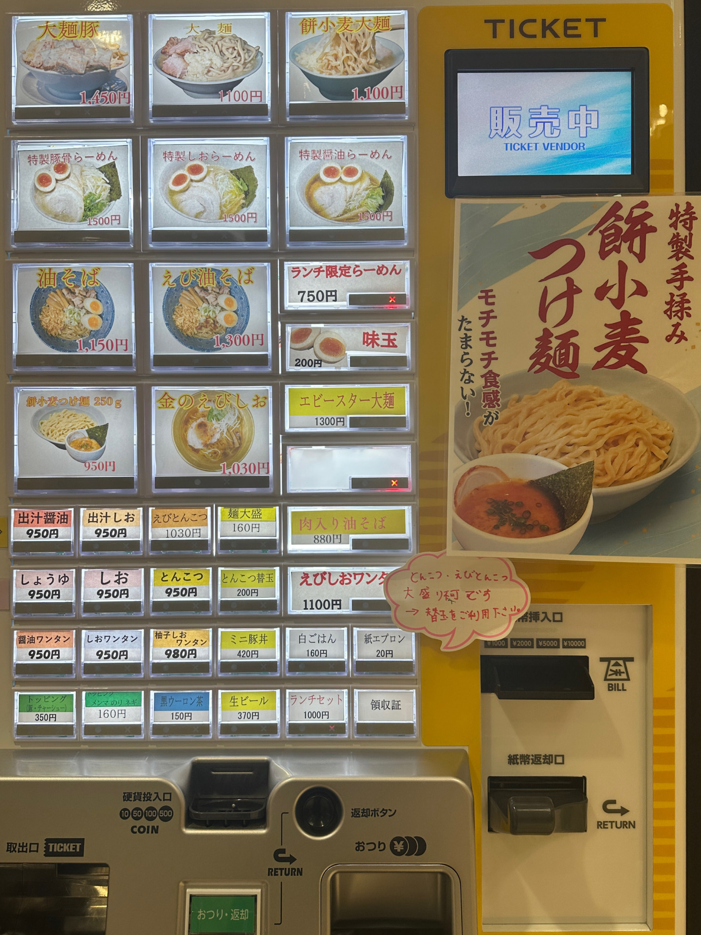 【注文】店頭の券売機で食券を購入。