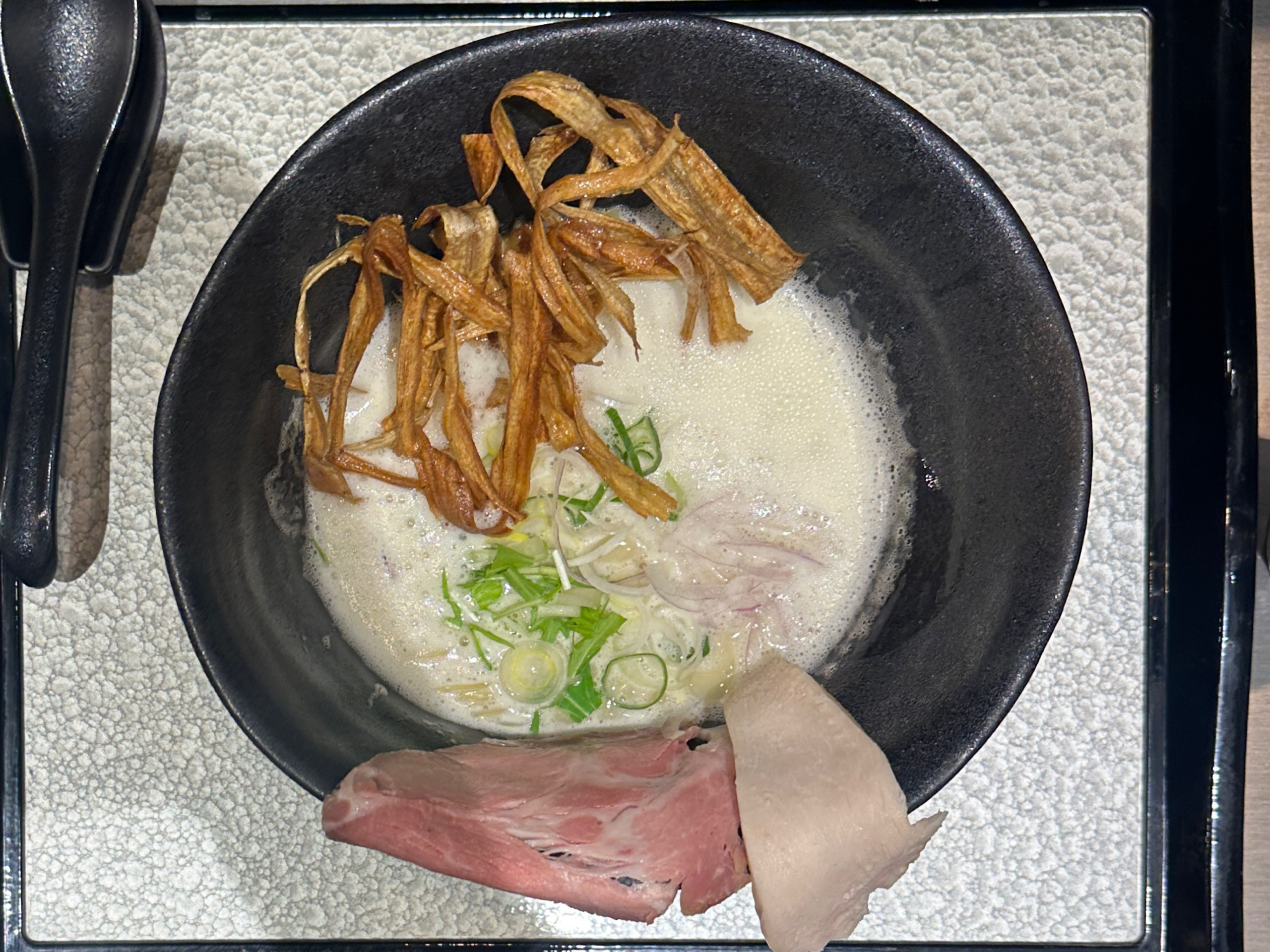 目の前に運ばれてきた瞬間、まずその圧倒的なビジュアルに目を奪われます。器の中に広がるのは、丁寧にブレンダーで泡立てられたかのような、きめ細やかで真っ白なスープ。一口啜れば、鶏の旨味が凝縮されたクリーミーかつマイルドな口当たりが広がり、体中が幸福感に包まれます。決して重すぎず、どこまでも上品でシルキーな質感は、まさに職人技の結晶です。