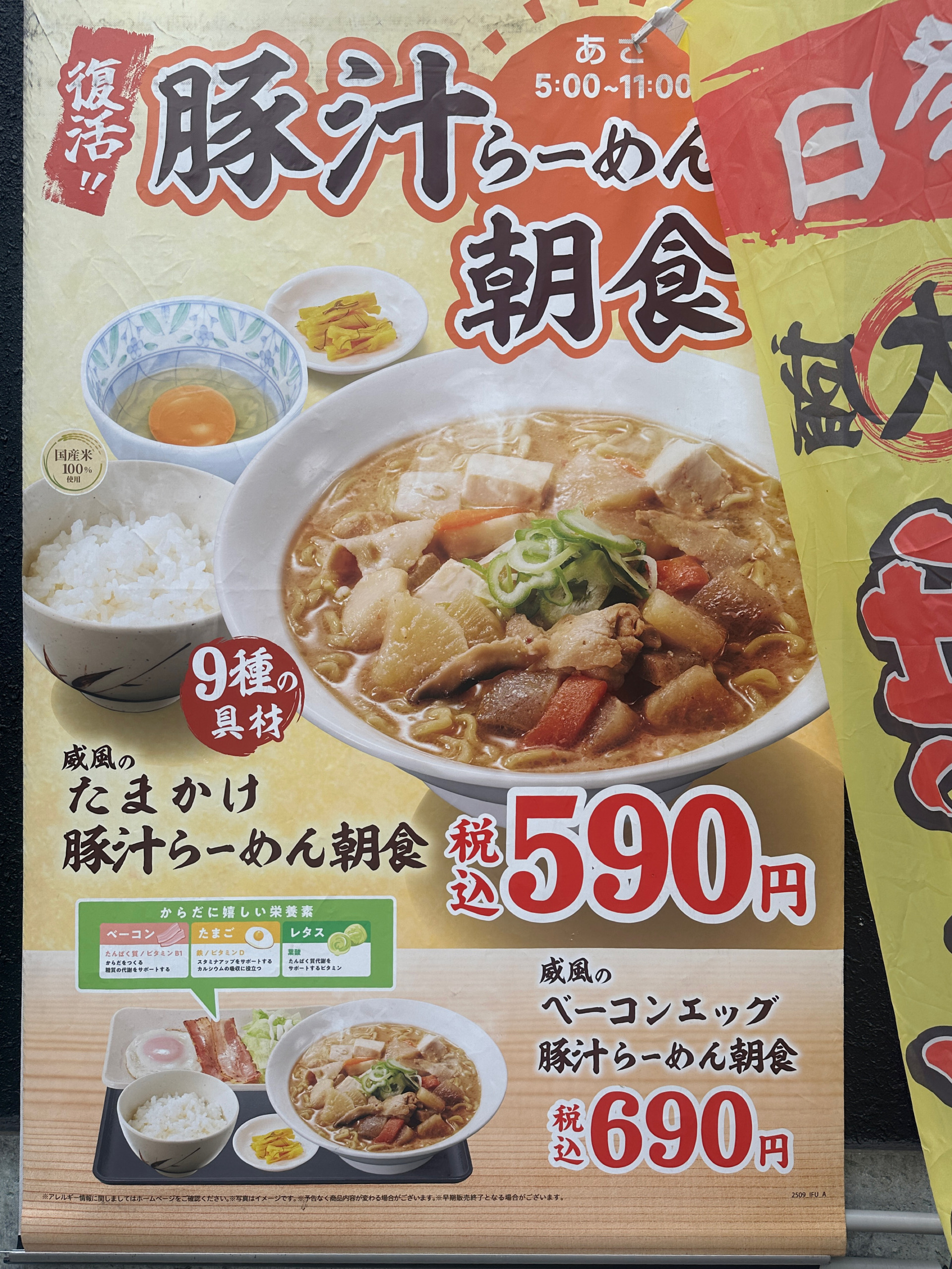 威風 秋葉原店(威風のベーコンエッグ豚汁らーめん朝食 690円)
