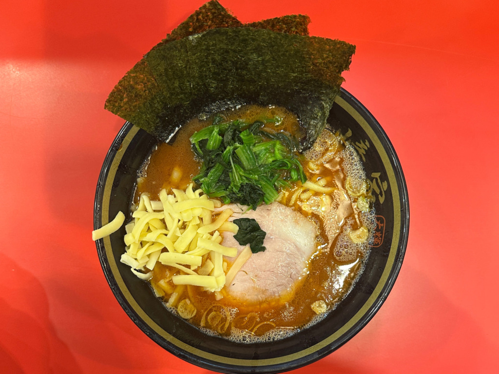 食券回収時にお好みを聞かれて硬め濃いめ多めを。さらにフォロワーサービスのチーズをお願いし。
