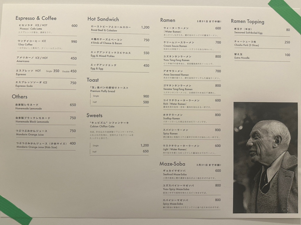 渋谷駅が最寄りの人類みな麺類 × パブロ・ディエゴ・ホセ・フランシスコ・デ・パウラ・フアン・ネポムセーノ・マリア・デ・ロス・レメディオス・クリスピニアーノ・デ・ラ・サンティシマ・トリニダード・ルイス・イ・ピカソ コラボ店舗「CAFE / RAMEN PICASSO CAFE」へ。