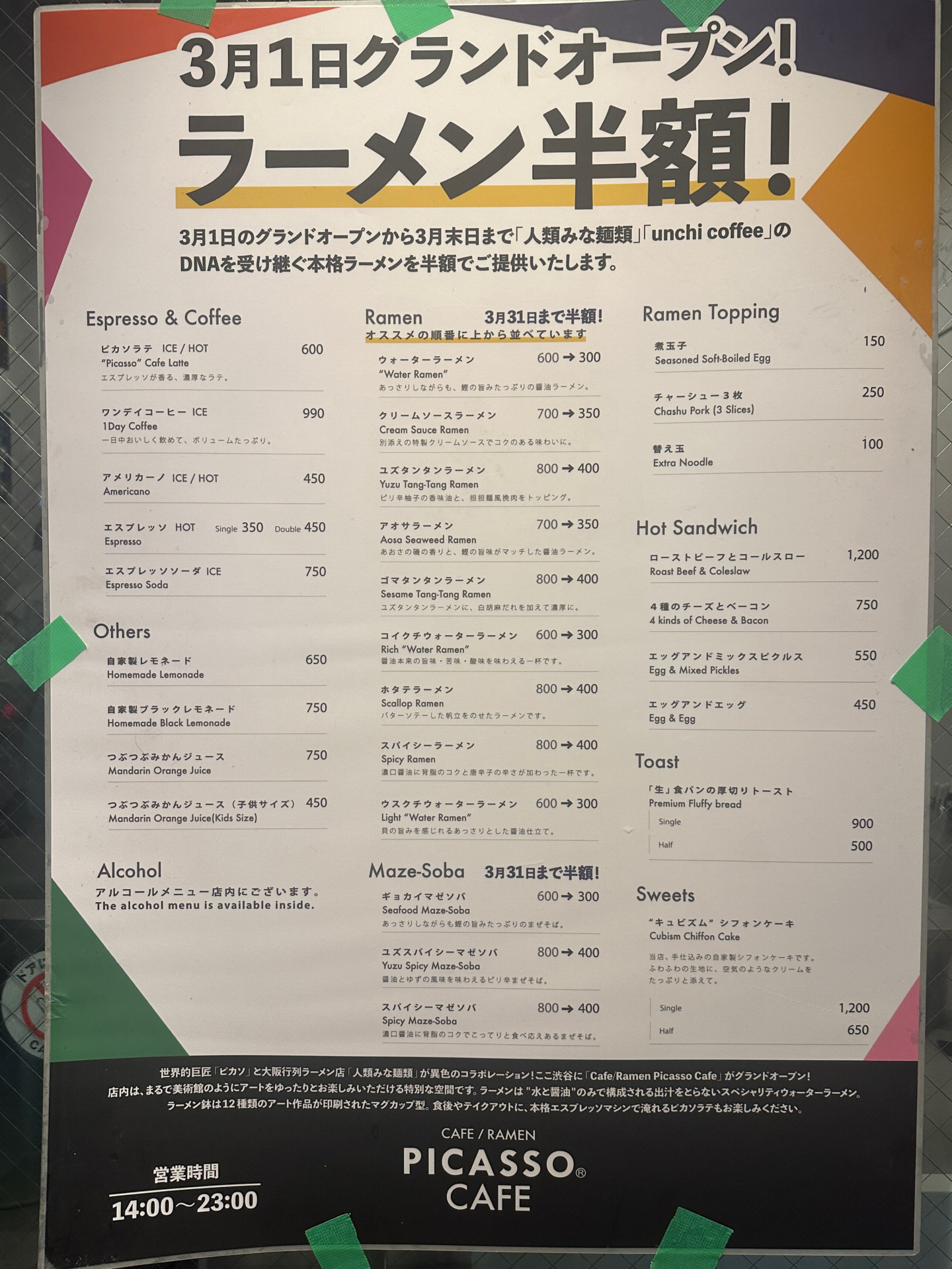 【店舗名】CAFE / RAMEN PICASSO CAFE(かふぇ らーめん ぴかそ かふぇ)