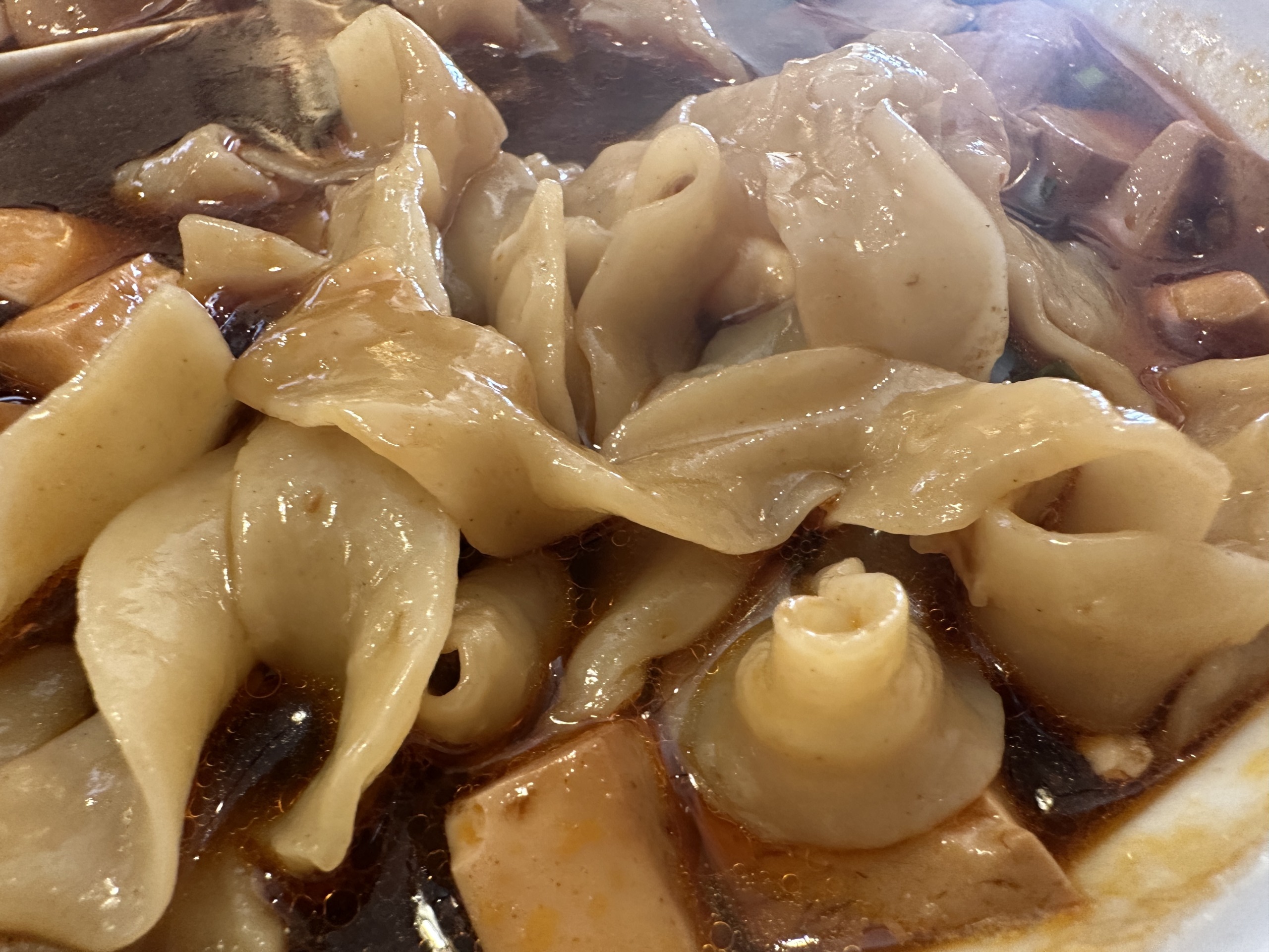 さらりとした麻婆豆腐スープ。辛さも痺れも無く食べ易い逸品。醤油ベースか良い味が凝縮されていてスープを啜る勢いが止まらないくらいの絶品でした。