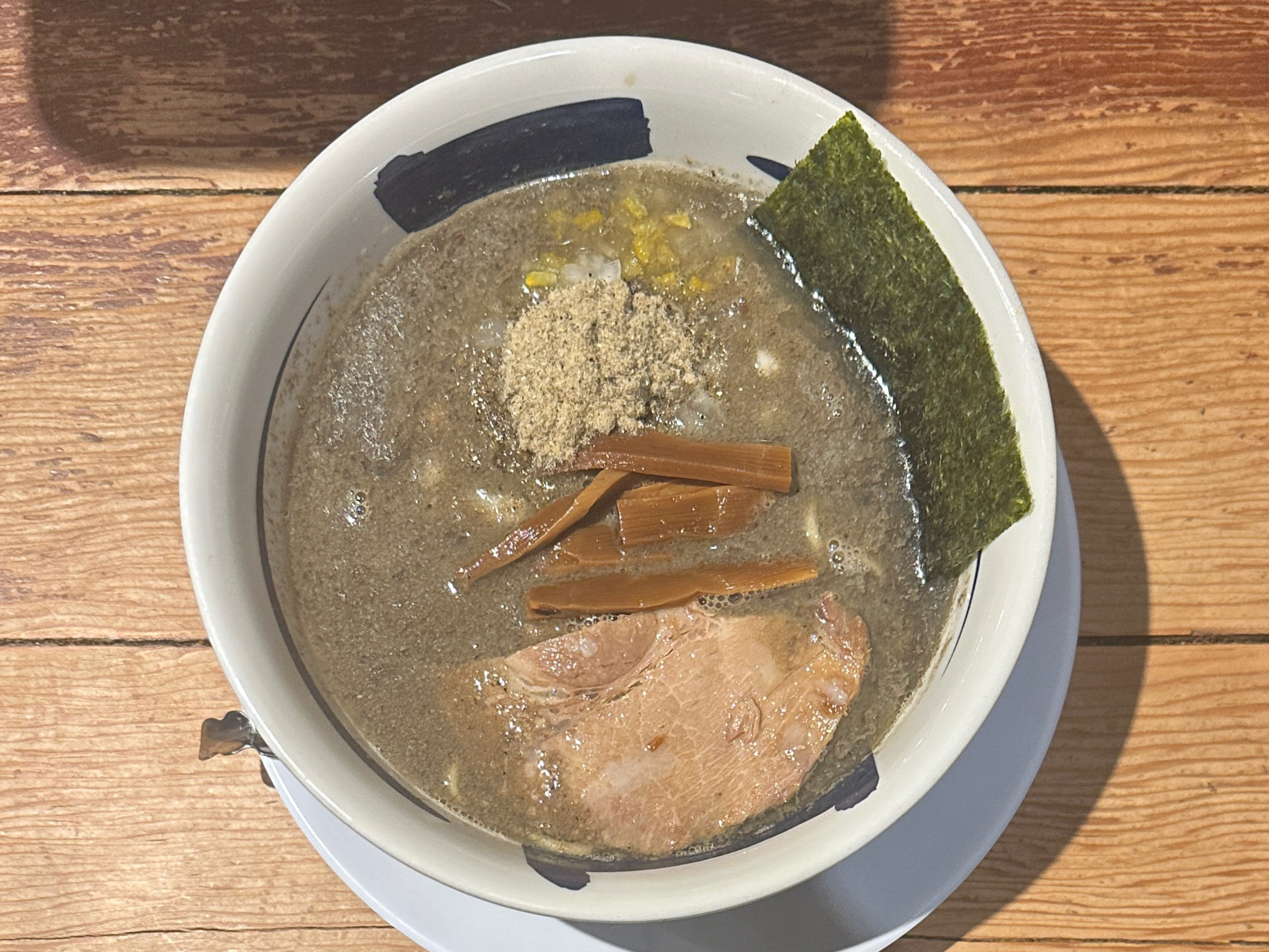 見た目のセメント色カラーが期待出来る煮干しラーメン。