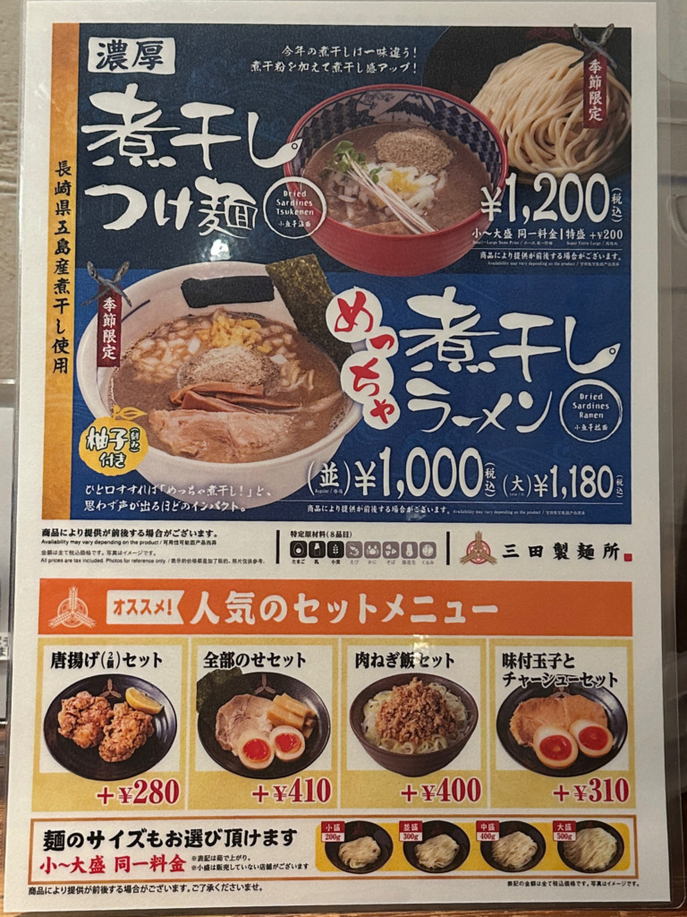 つけ麺専門店 三田製麺所 五反田店(めっちゃ煮干しラーメンニボマシ 1200円)