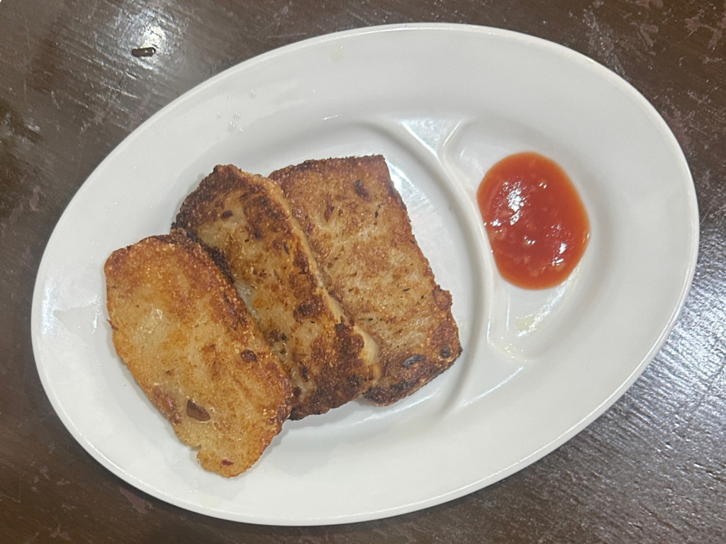 好きな台湾料理の1つ。甘辛旨なチリソースが添えられて。周りサクサク、中ふんわりな逸品、大根餅でした。