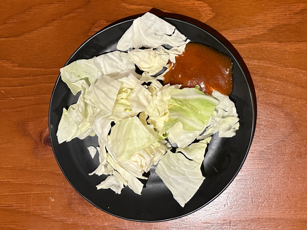 キャベツ味噌。お替わり無料もデフォルトでもキャベツ量が多くボリュームあり。