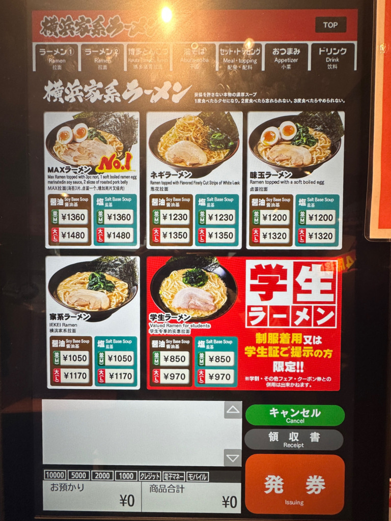 横浜家系ラーメン 壱角家 五反田店(MAXラーメン醤油 1360円)
