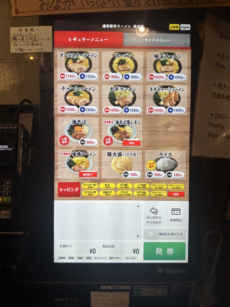 【注文】店内の券売機で食券を購入。