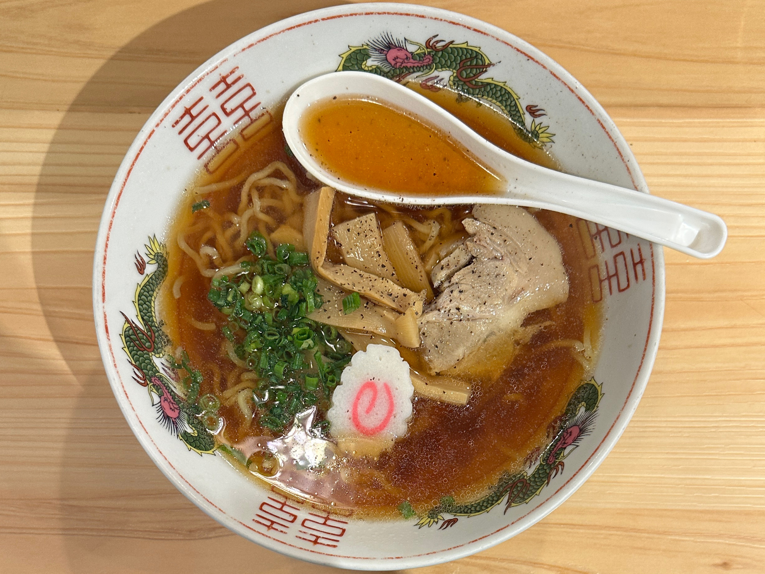いかにも昭和レトロな雰囲気のシンプルな醤油ラーメン。チャーシューが絶品。