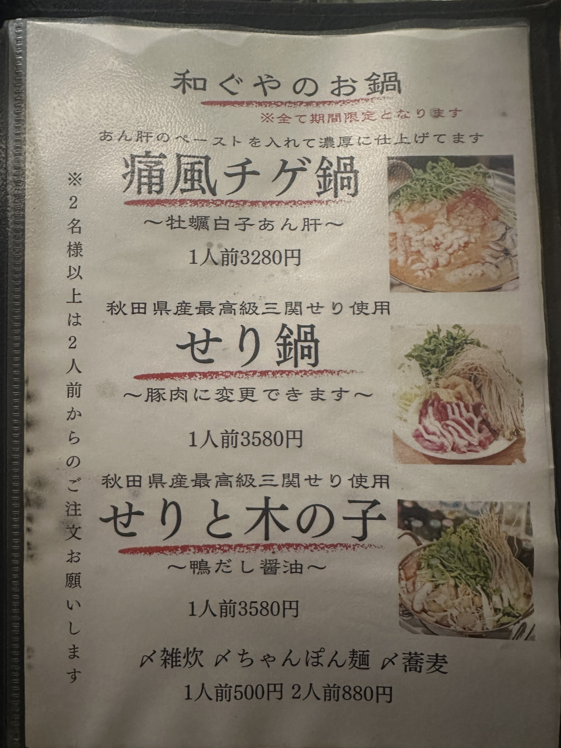 小料理 和ぐや(濃厚痛風チゲ鍋〜牡蠣白子あん肝〜コース 3980円)
