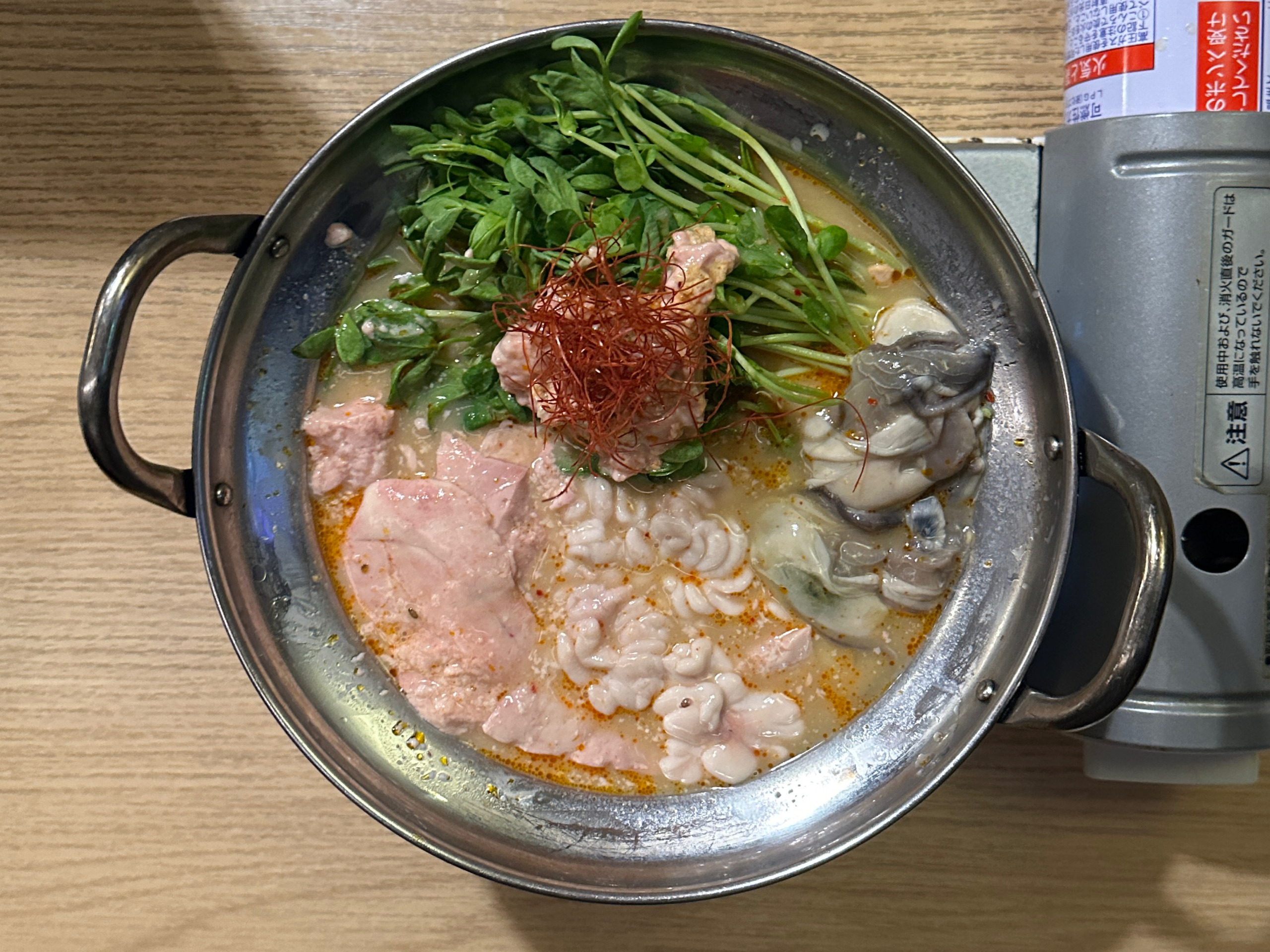 店員さん「牡蠣が煮えたらお召し上がり下さい」と。