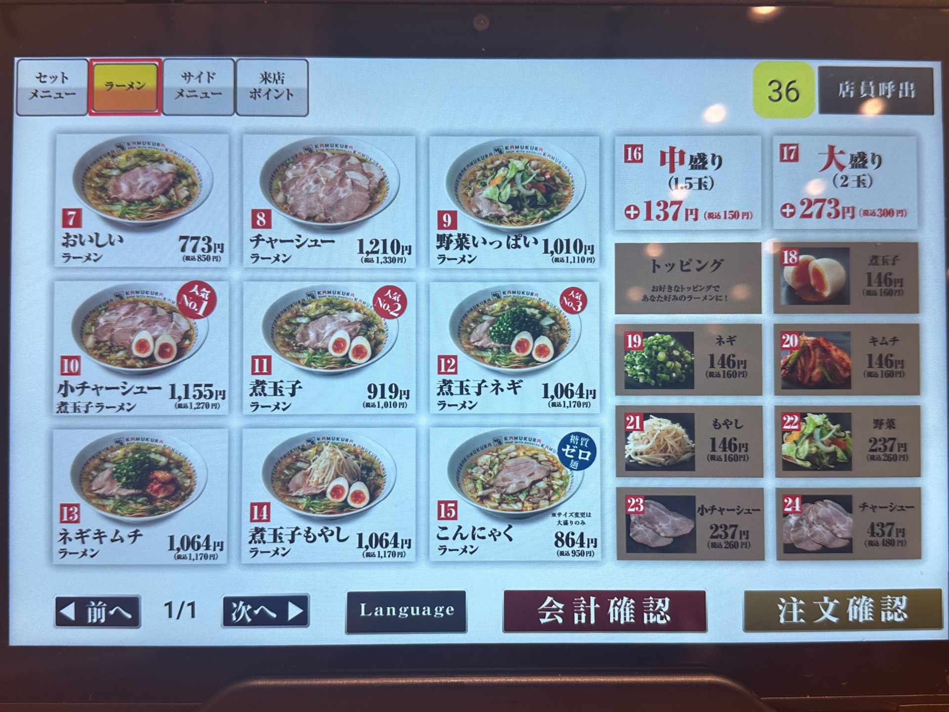 【注文】卓上のタブレットで注文。レジにて後会計