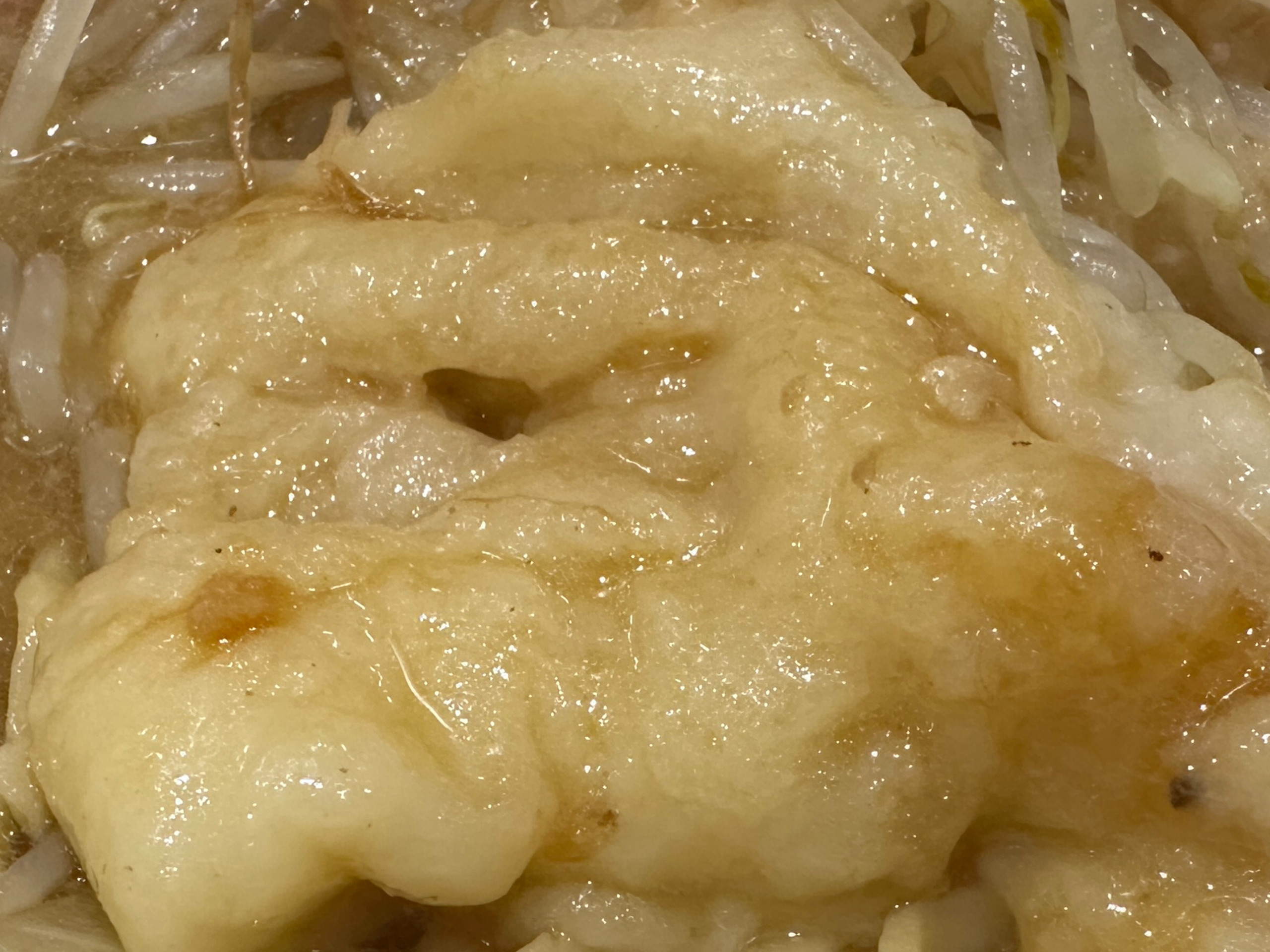 ヤサイの下からお餅がひょっこりと。よくのびーる絶品なお餅。まさにお雑煮ラーメン🍜