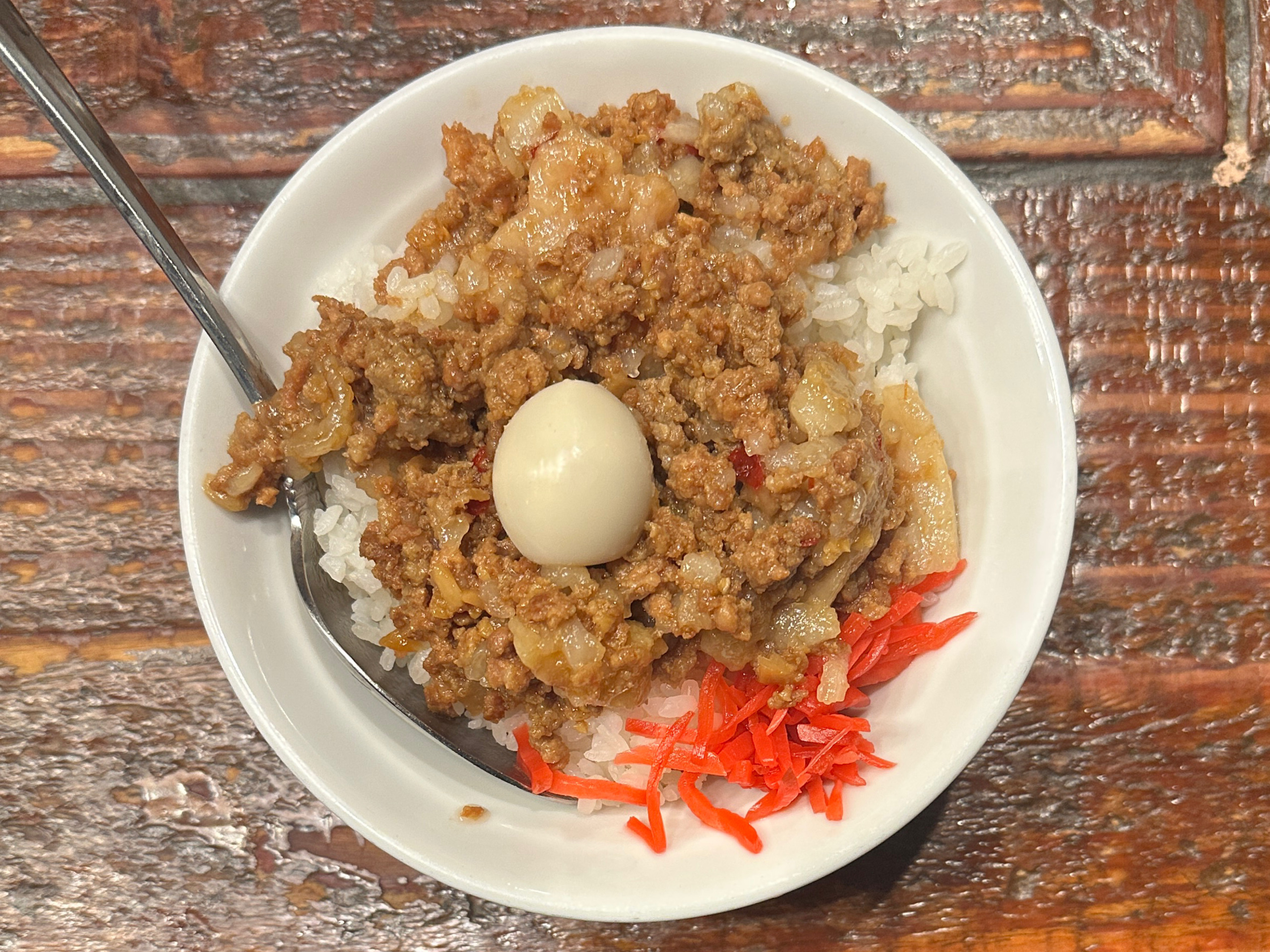 うずら、紅生姜他。濃厚な味わいで超絶品なマシライスでした。